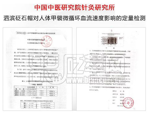 北京泗濱砭石技術開發中心與北京中醫藥大學附屬護國寺中醫醫院經過長期大量的臨床實驗和科學檢測后聯合推出的砭石帽(專利申請號:00267556.0)是在特制的帽子內綴上泗濱砭石,在佩戴時,泗濱浮石(泗濱砭石)奇異的場能和磨擦時所產生的超聲波脈沖刺激頭部重要穴位(砭石使用結合穴位效果更佳,詳情請看砭石養生欄目),有什么效果呢?做一下檢測看看。