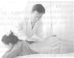 圖42 在脊柱兩側(cè)行砭石推法