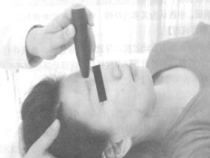 (四)用砭石點按印堂1分鐘,抹前額10次并沿著眉弓到太陽穴往返10次;按壓眼眶周圍,點按耳門、聽會、翳風穴各1分鐘.并揉刮耳前耳后10次。
