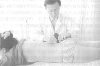 (五)用砭石在患者背部及下肢的前后兩側(cè),按從上向下方向和緩叩擊,往返5~10次,結(jié)束治療。
