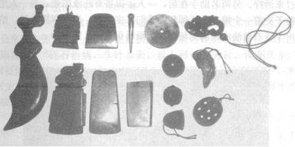 2.保健用具如健身球和其他供手中展玩的玉石制品玉核桃、手蓮、握鴨等。圖1—2為部分民間石療工具的收藏品。