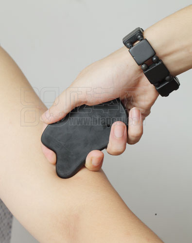 刮法:用砭石刮痧板(相關(guān)鏈接:《泗濱砭石刮痧板》)的板身刮后背中部、小臂內(nèi)側(cè)、小腿前部。