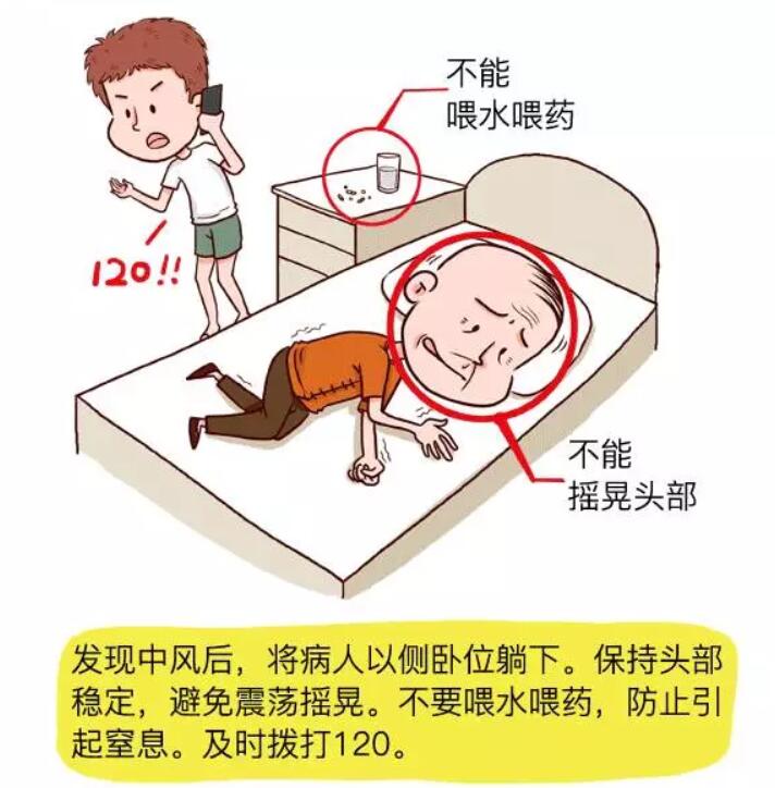??千萬不要為了弄醒病人而大聲叫喊或猛烈搖動病人,這樣可能會使病情迅速惡化。此時可以嘗試強力點揉手掌虎口位置的合谷穴、頭頂部的百會穴和足心處的涌泉穴,這三個穴位可以幫助患者盡快蘇醒。如果病人是清醒的,盡量安慰病人,緩解緊張情緒,不要大聲呼喚病人,以免造成患者的心理壓力。