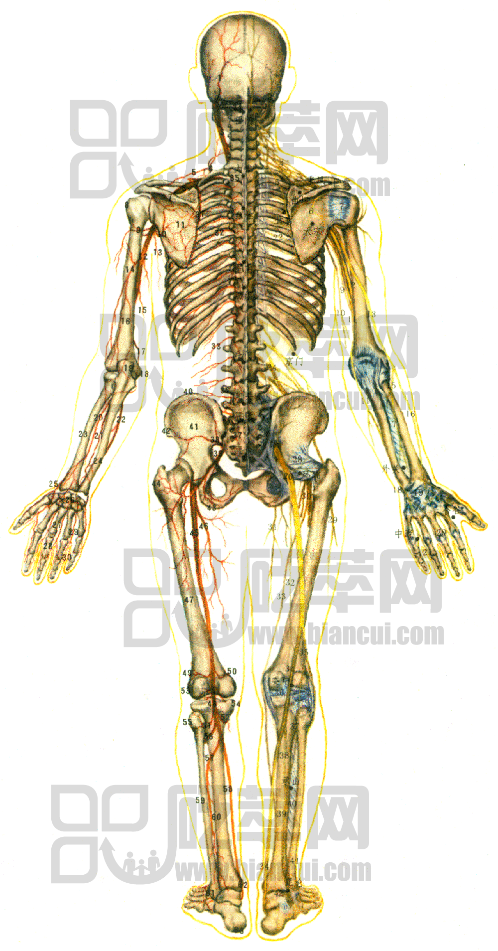 一、脊神經后支 較前支細小,分支形式簡單,節段性較明顯,通過椎骨橫突間和骶后孔至軀干的背面,一般分為外側支和內側支,其中運動纖維分布在項、背部的深層肌砭石,感覺纖維分布在枕、項、背及腰骶部的皮膚。枕部較大的皮神經為枕大神經,發自第二頸神經后支的內側支。