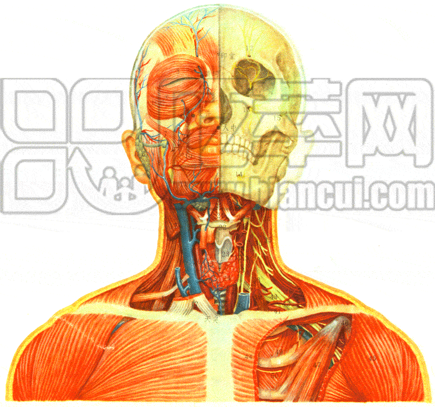 8.咬肌 22.舌骨 35.副神經(jīng) 49.肋間外肌