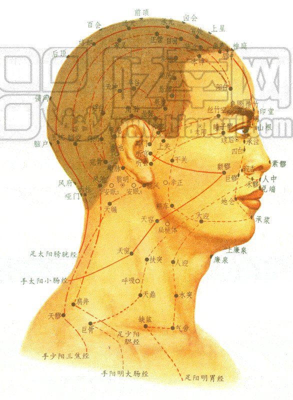 本圖在皮膚上標(biāo)示了手陽明大腸經(jīng)、手少陽三焦經(jīng)、手太陽小腸經(jīng)、足太陽膀胱經(jīng)、足少陽膽經(jīng)和足陽明胃經(jīng)的外行徑路以及與各經(jīng)相連的穴位(砭石使用結(jié)合穴位效果更佳,詳情請看砭石養(yǎng)生欄目)。此外,標(biāo)示了任、督兩脈的穴位以及一些經(jīng)外奇穴和新穴。