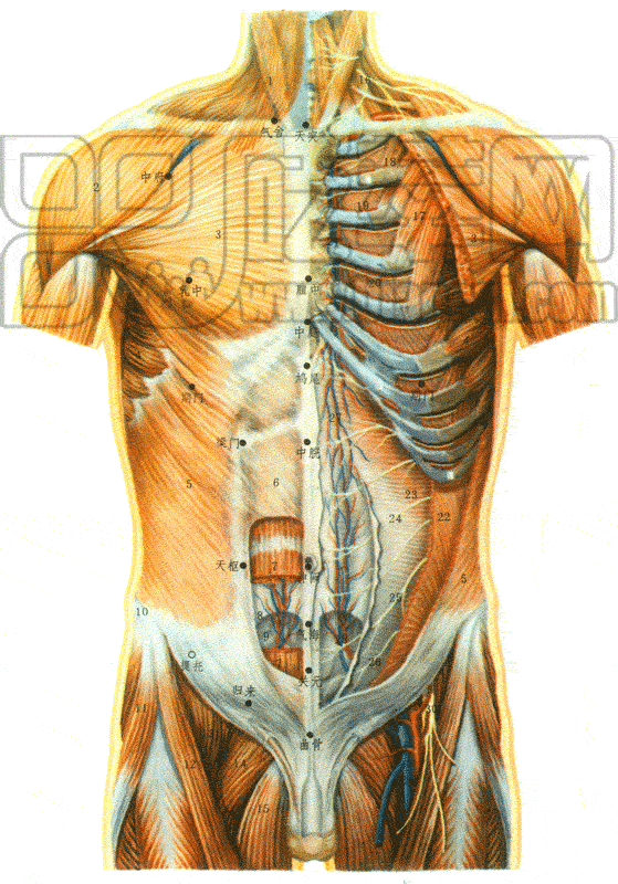 了解胸、腹前壁的厚度和層次關(guān)系(特別是胸壁)有助于針刺時(shí)掌握深度,避免刺傷胸、腹腔中的器官。