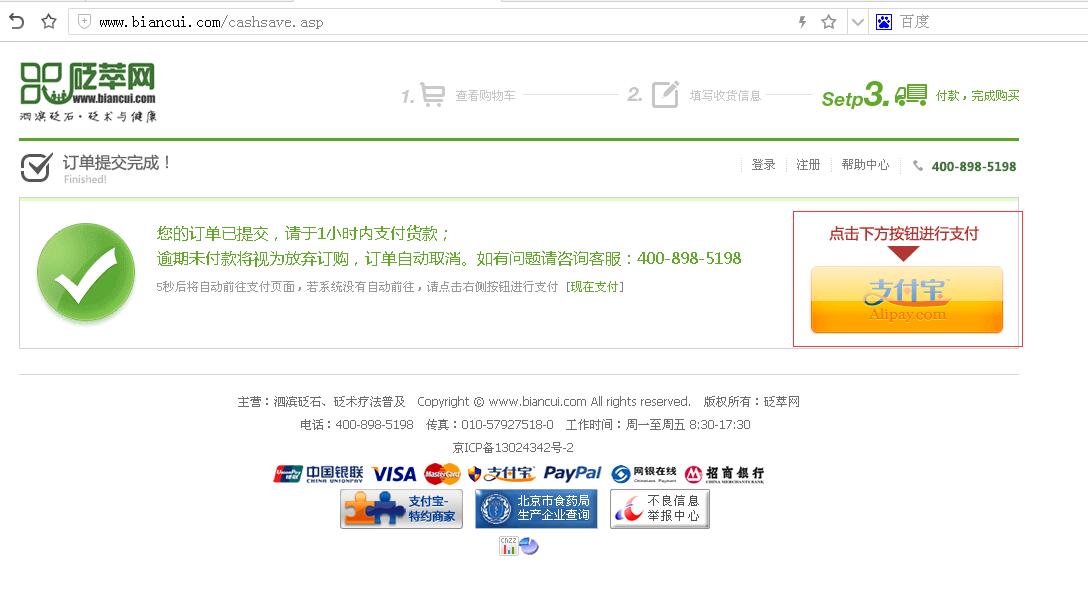 2、砭萃網客服將于工作時間2小時內確認到賬情況,非工作時間付款需在臨近的第一個工作日內確認;