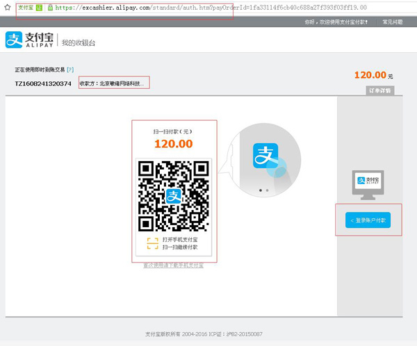 1、訂單提交成功后,點擊右側的支付寶按鈕支付,或者等5秒鐘系統自動跳轉到支付寶官網付款;(見圖1)