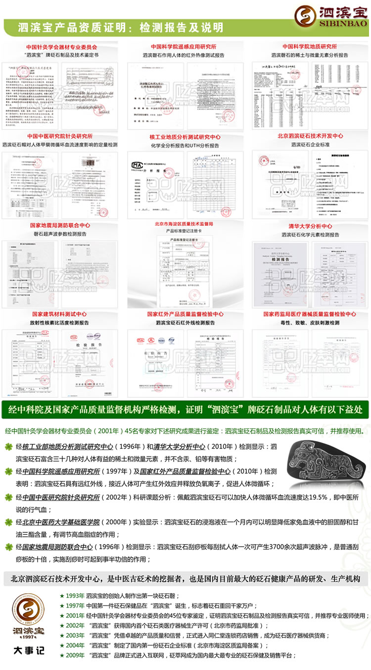 泗濱寶·泗濱砭石產品檢測報告及相關資質目錄: