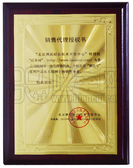 “北京泗濱砭石技術開發中心”特授權“砭萃網”(http://m.bubum.cn)為我公司的網絡一級代理銷售商,全權負責“泗濱寶”系列產品在互聯網上的銷售事務。
