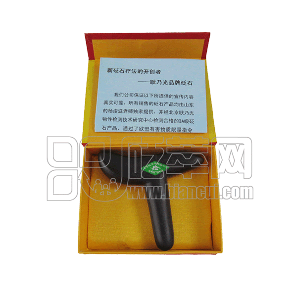 耿乃光砭石品牌創(chuàng)建于1999年,歷經(jīng)14年砭石療法論證,經(jīng)北京西苑醫(yī)院及國內(nèi)多家知名醫(yī)院臨床實(shí)踐,事實(shí)證明,使用耿乃光砭石對(duì)人體保健和輔助治療均有效果。耿乃光品牌砭石產(chǎn)品取材天然泗濱浮石,其有害物質(zhì)含量檢測遠(yuǎn)遠(yuǎn)低于國家標(biāo)準(zhǔn)(GB 7916-1987和GB 18584-2001),并通過了歐盟有害物質(zhì)限量指令(RoHS,2002/95/EC)檢測。用戶可以放心使用。耿乃光砭石享有中國砭術(shù)臨床品牌美譽(yù),并因其神奇的療效而成為CCTV-10《百科探秘》欄目強(qiáng)力推薦產(chǎn)品。