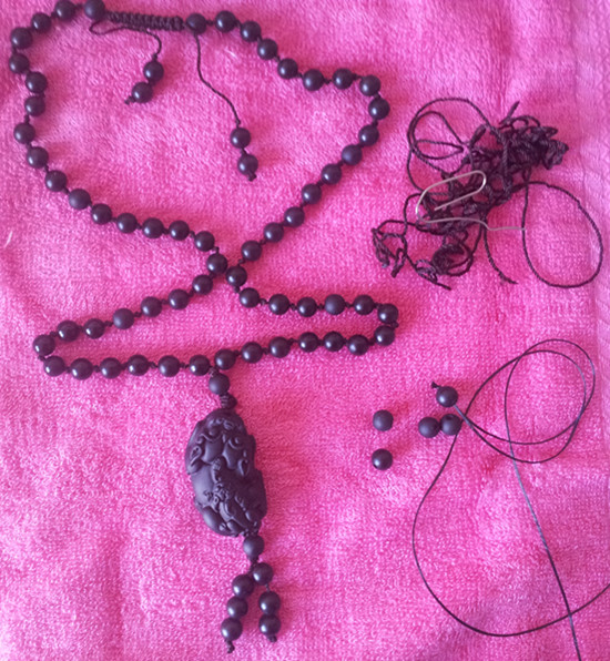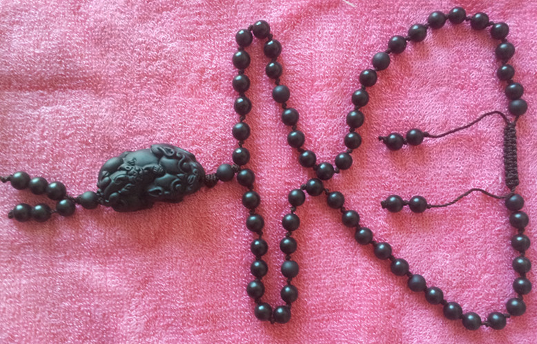 曬單心得: 買了個女士2#的項鏈,買了個貔貅的掛墜,然后都拆啦,重新給穿了一下,呵呵,終于穿好了,自己是很滿意啦。用了72顆珠子,還剩5顆。等有時間啦,把那顆大的珠子也編條手鏈。