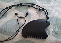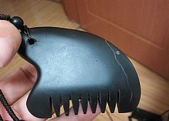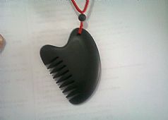 2、使用砭石梳子掛件刮痧時(shí),力度要適中且避開皮損部位;