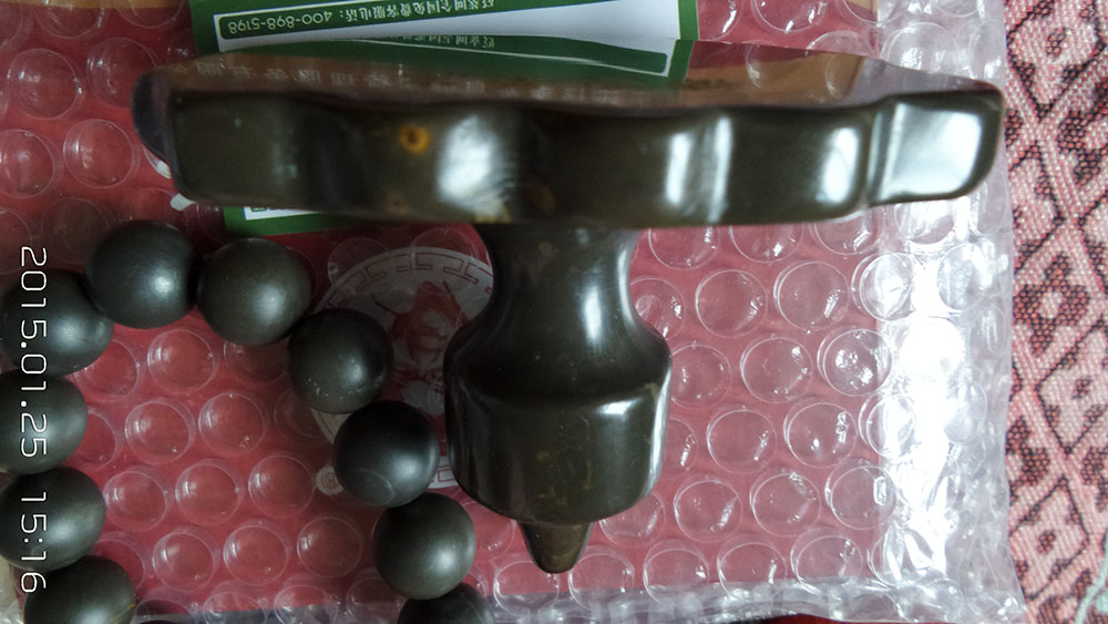 ??? 砭石經(jīng)絡(luò)按摩棒,是依據(jù)中醫(yī)經(jīng)絡(luò)學(xué)原理進(jìn)行診療的按摩用具。根據(jù)人體左右手的結(jié)構(gòu)特點(diǎn)而設(shè)計(jì),構(gòu)造上分為操作柄和按摩棒。手柄部的波浪形曲線,既易于手握,又可用于梳理手指、腳趾血脈。按摩棒多用于身體部位的點(diǎn)穴和按壓。砭石按摩棒做工精細(xì),表面光滑,手感舒服,與砭石療法結(jié)合使用,具有行氣活血之功效。由于氣血得溫則易行,砭石療法不僅依靠手法的機(jī)械力的作用,更重要的是依靠砭石本身的溫經(jīng)作用補(bǔ)充氣血運(yùn)行需要的“動(dòng)力”,因此更易推動(dòng)氣血沿經(jīng)運(yùn)行。