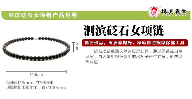 ??? 泗濱砭石項鏈是由56顆直徑約為8mm的小砭球或砭珠串聯(lián)而成的砭石飾品。砭石項鏈古樸大氣,除了具有普通項鏈的裝飾點綴功能之外,還有很好的保健作用,適用于砭石療法中的滾法、壓法、感法、溫法等。砭石項鏈由泗濱浮石加工制成,原石具有微晶結構,與皮膚接觸時,細膩而溫潤。