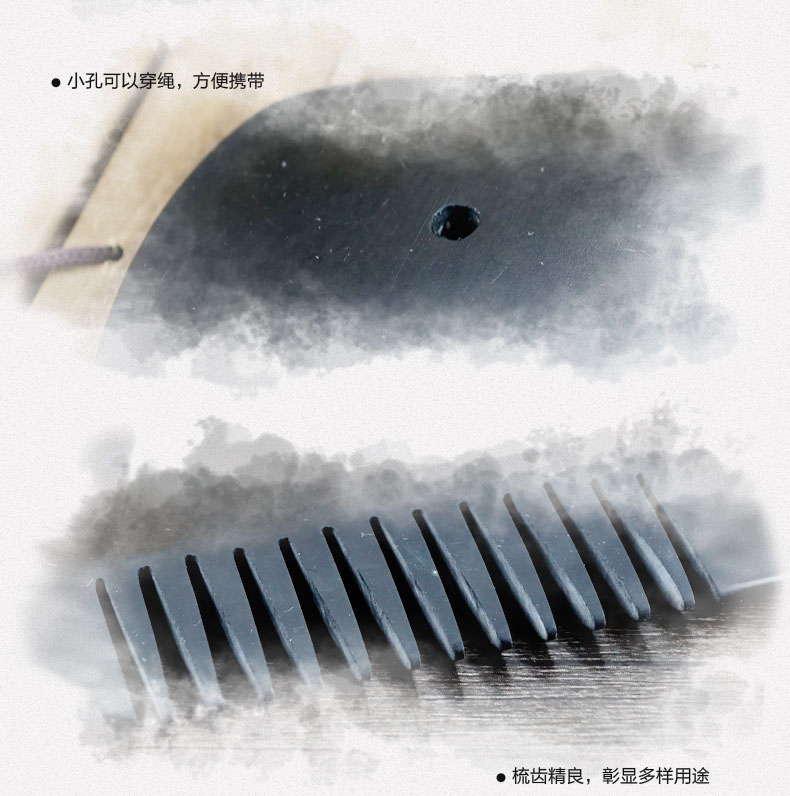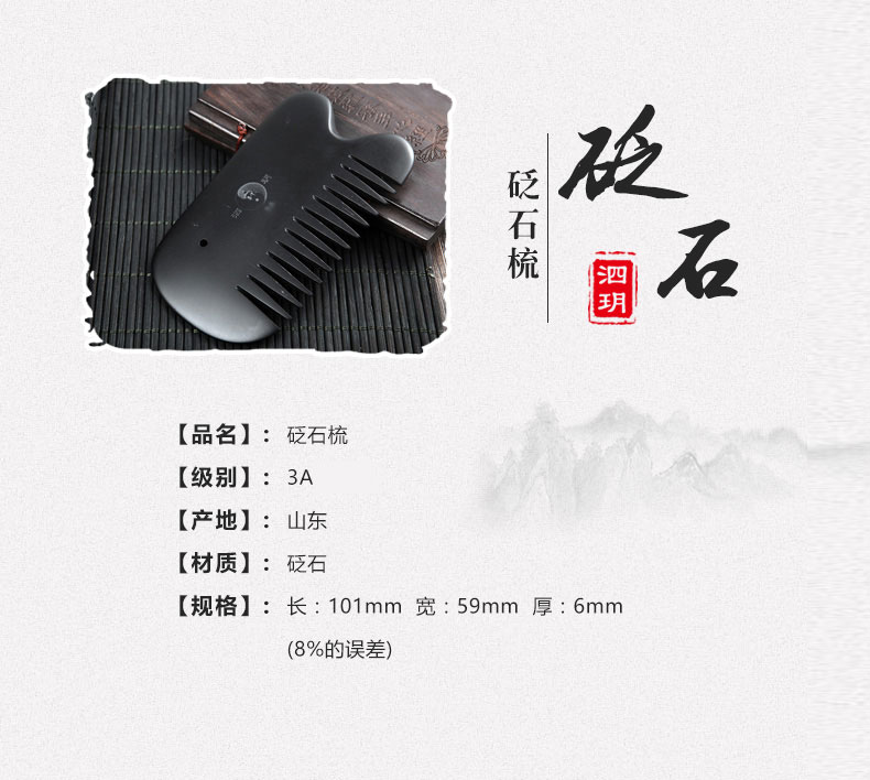 泗濱砭石多功能梳,又稱砭石刮板梳,是由天然泗濱浮石加工而成的養生用品。構造上由板頭、板身(分為背邊和齒邊)、板尾(分為鈍尾和尾中凹)三部分組成。砭石刮板梳兼顧刮板與砭梳的特點于一身,既可用于全身各部位的點按刮擦,又可用于頭部、胸部以及各經絡腧穴的按摩與疏通。
