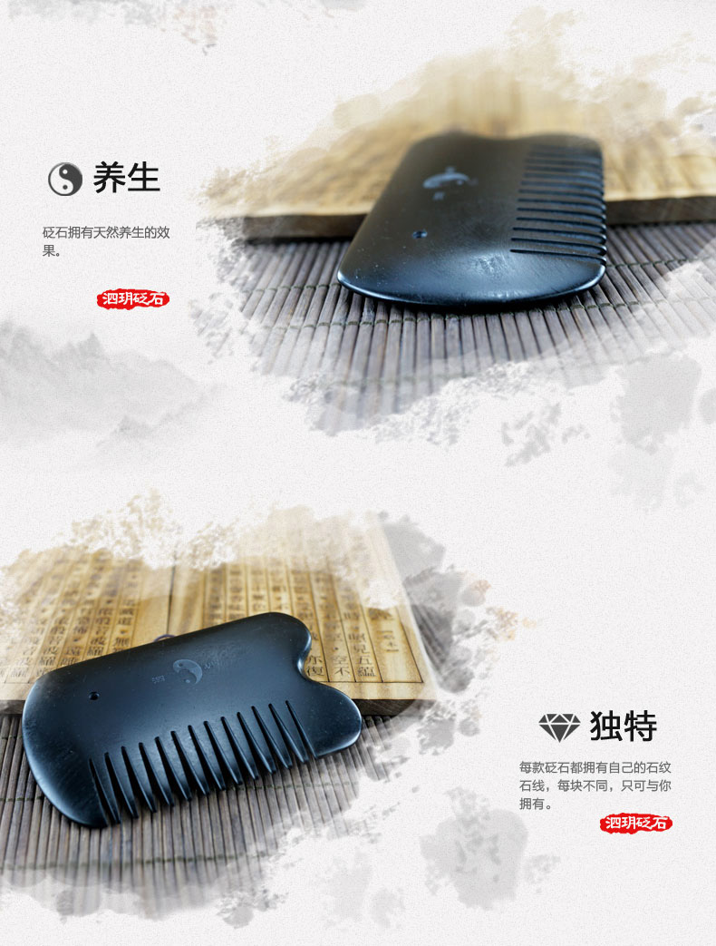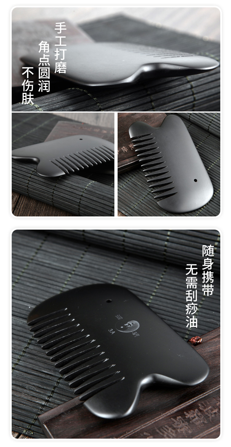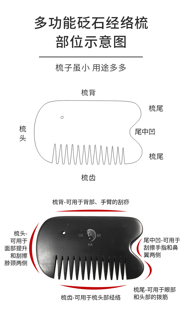 2、砭梳齒邊可用于頭部的點按和疏通,還可用于乳腺部位的調節和梳理。