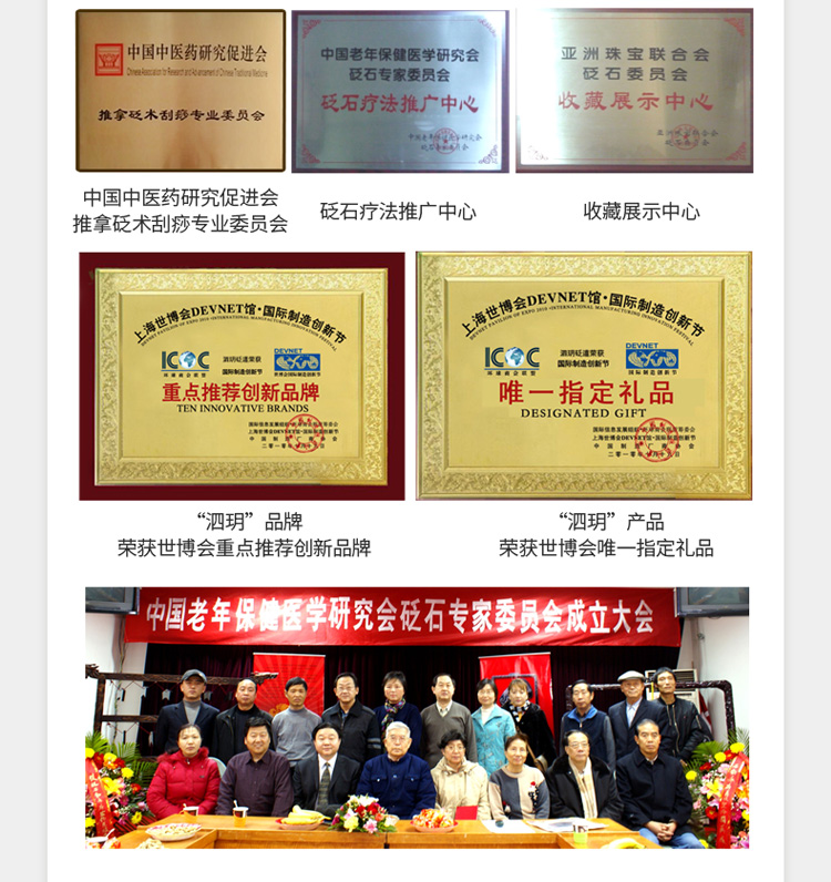 泗玥健康產業源于1987年,歷經二十多年的發展目前已成為一家集砭石原材料采集銷售、中醫砭術調理、美容養生服務、以及砭術師職業培訓為一體的企業。泗玥砭石產品已進駐同仁堂、嘉事堂、華氏大藥房、康復之家等一千多家終端藥房,經營砭石養生館一百六十余家,實現了天貓、淘寶、京東等電子商務平臺全覆蓋模式。2010年上海世博會上,泗玥品牌憑借其產品特點和影響力榮獲大會“重點推薦創新品牌”和“指定禮品”兩項最高大獎。