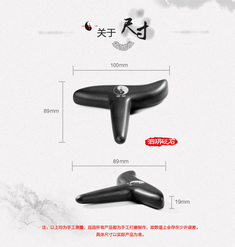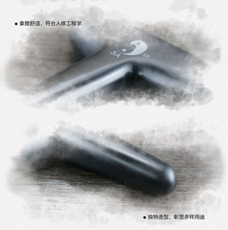 泗濱砭石T型椎,簡稱砭石椎,是由天然泗濱浮石加工而成的養(yǎng)生用具。其外觀呈T型,由椎狀豎柄和弧形橫柄兩部分組成。砭石錐壓力大,刺激性強,用途廣泛,不僅適用于手足部位的穴位保健,還可用于全身各部位的點按刮擦。與點穴椎相比,T型椎拿握更加舒適,操作便捷省力,更符合人體工程學(xué)結(jié)構(gòu)。