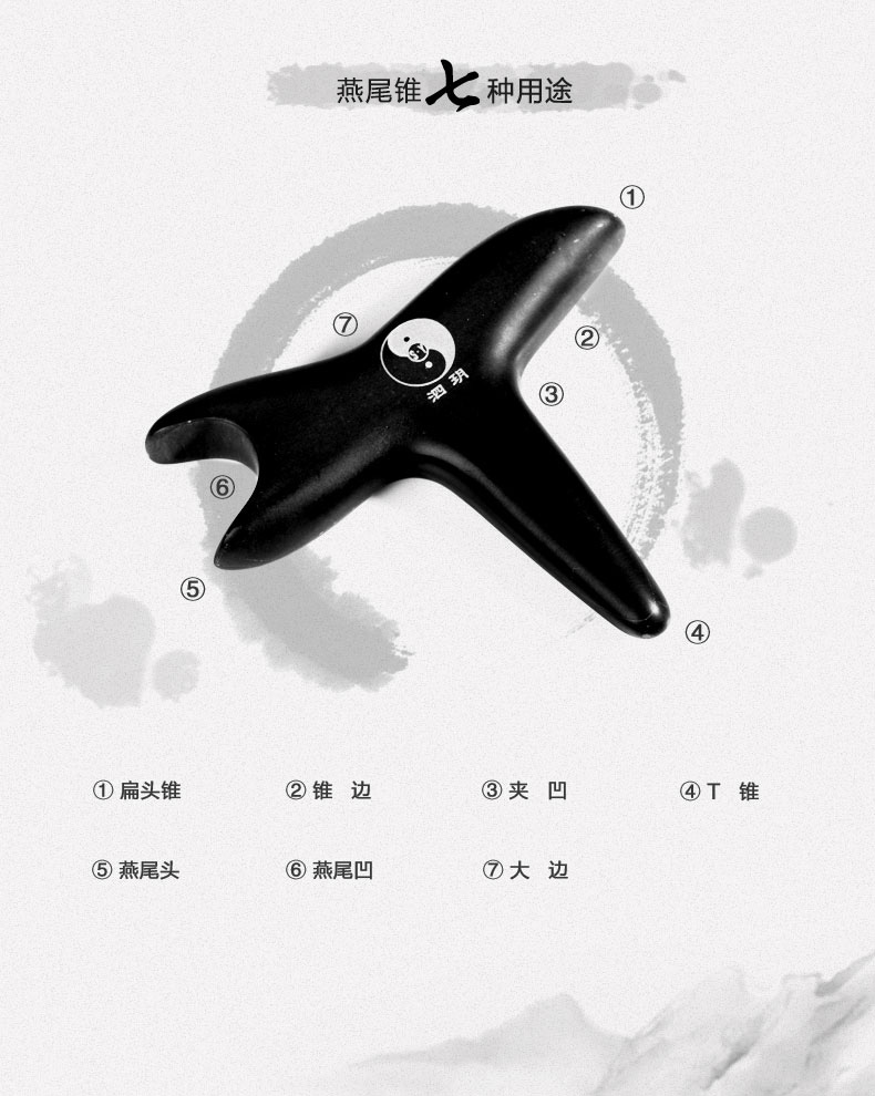 泗濱砭石燕尾椎是由天然泗濱浮石加工制作而成的一種中醫(yī)養(yǎng)生器具。其構(gòu)造上可分為錐體與燕尾兩部分。相較傳統(tǒng)砭錐而言,燕尾椎用途更加寬泛,手法更加靈活。其不僅適用于全身各部位的點(diǎn)按刮擦,還可用于手足部位的調(diào)理保健,這是燕尾椎的突出特點(diǎn),也是普通砭錐較難實(shí)現(xiàn)的功能。