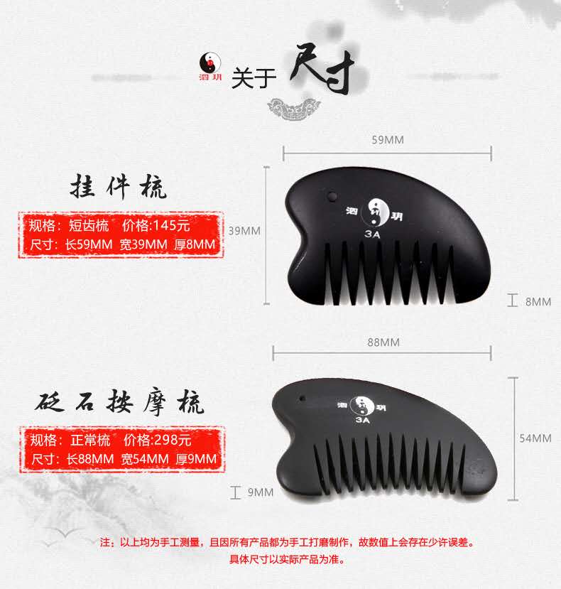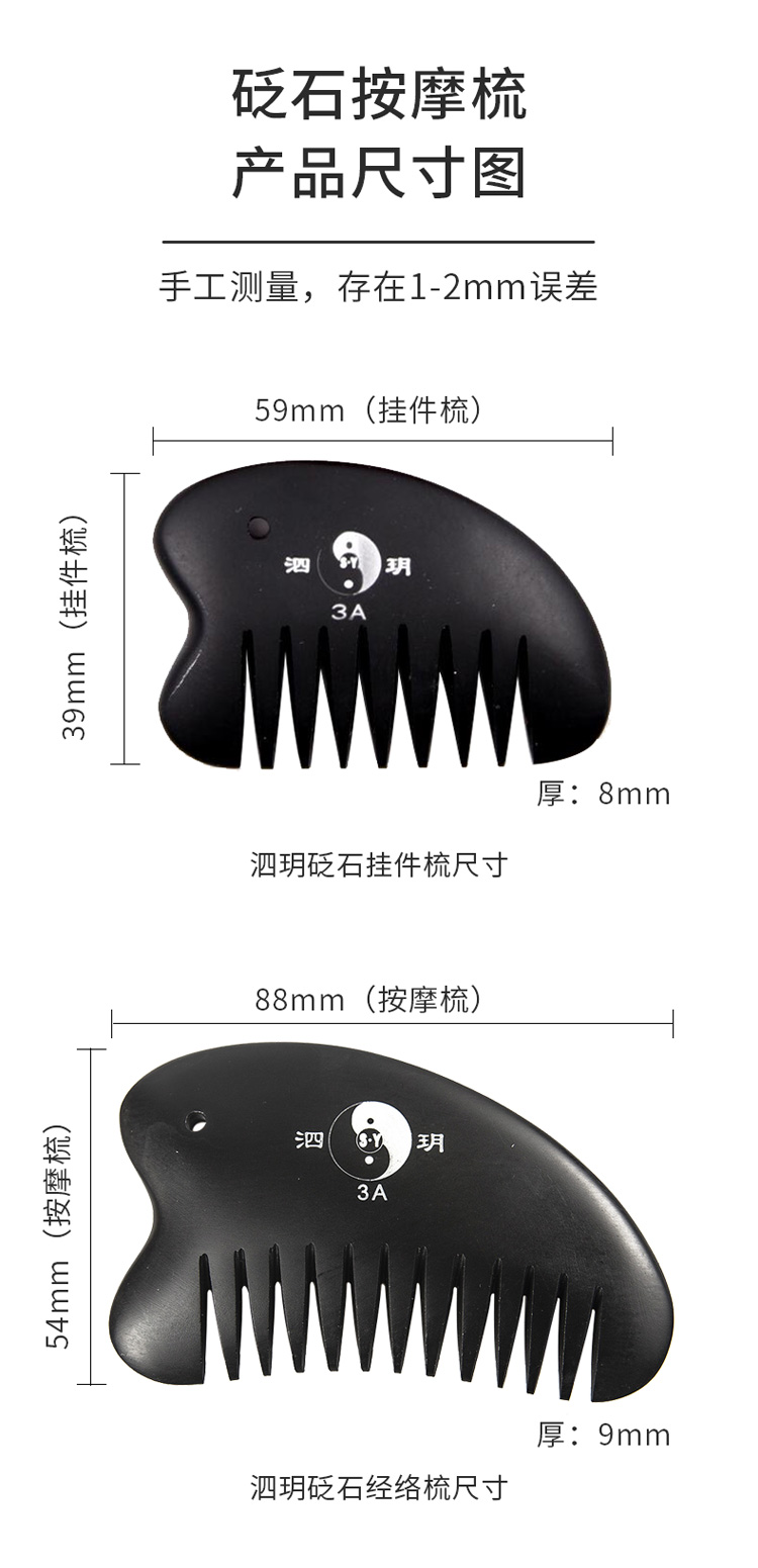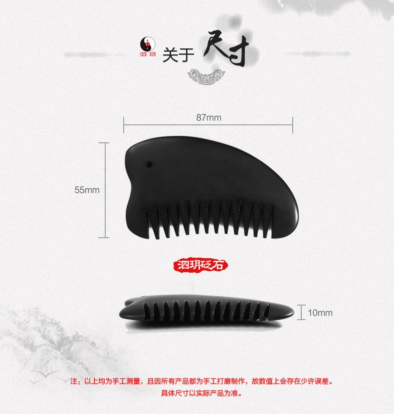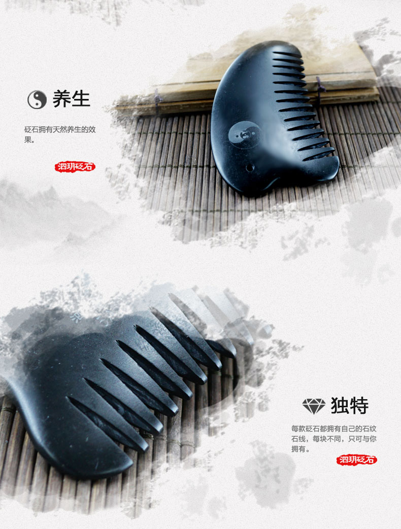 2、砭梳齒邊可用于頭部、胸部以及經(jīng)絡(luò)處的點按和疏通。梳理時,速度宜緩,可一邊梳理一邊施力。