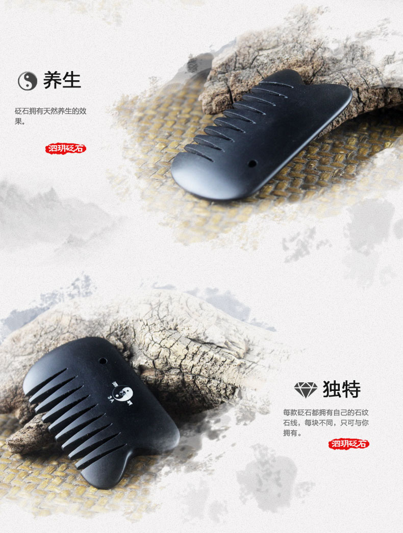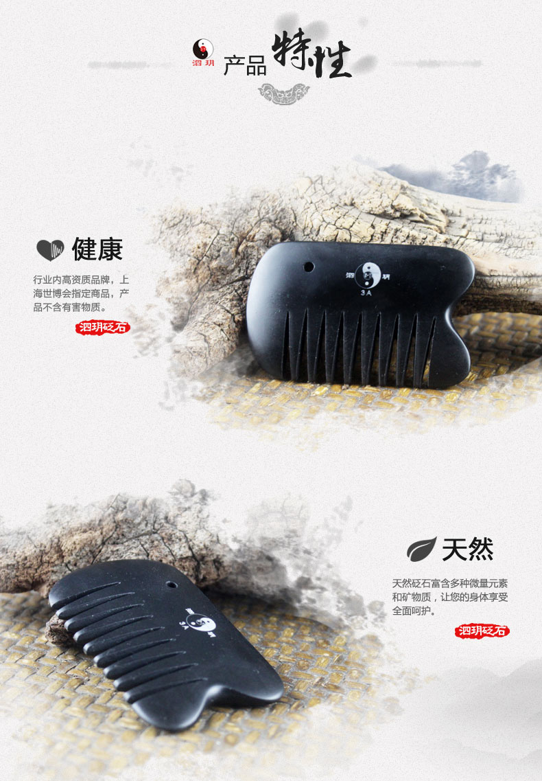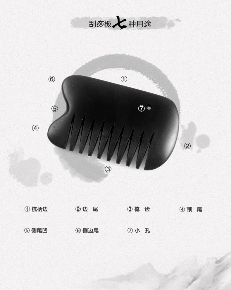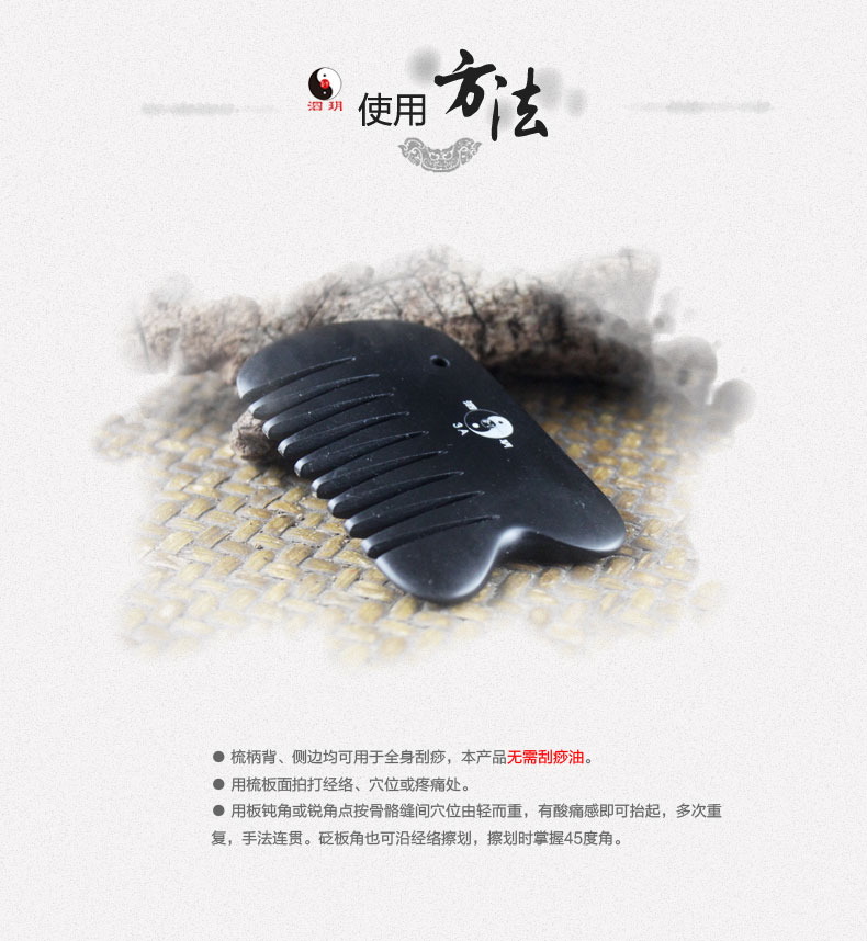 2、砭梳齒邊可用于頭部的點按和疏通,還可用于乳腺部位的調節和梳理。