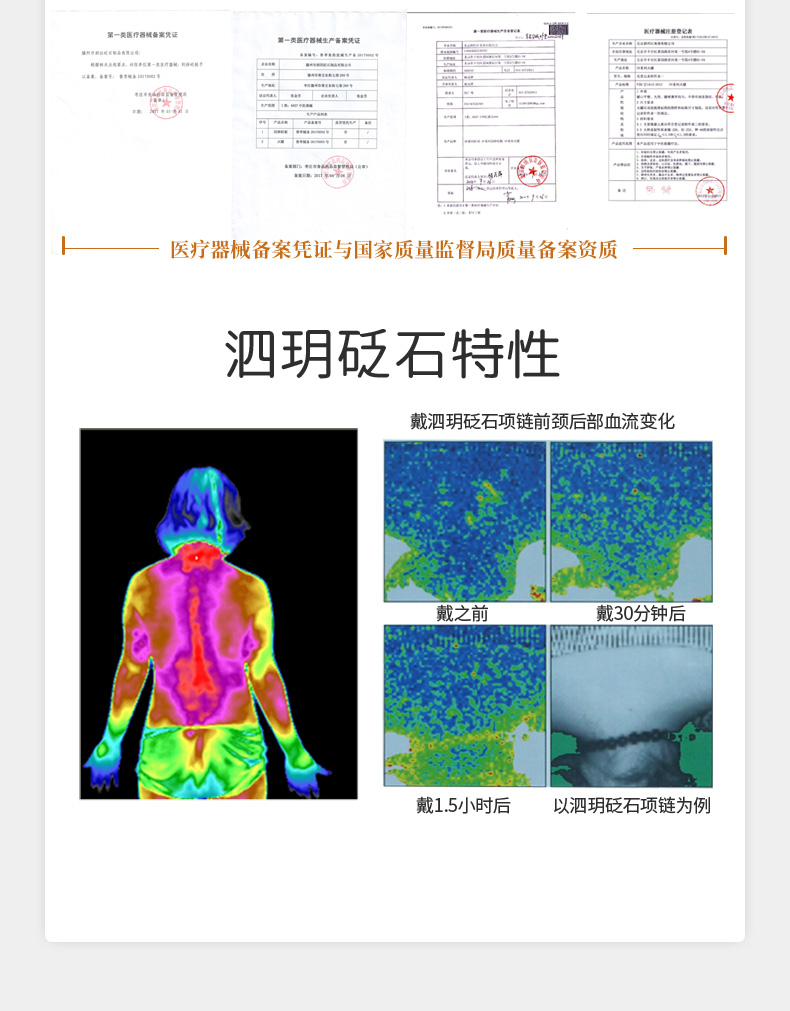 2、佩戴時間的長短,可根據(jù)每個人的身體情況而定。如果使用后,皮膚有灼熱刺痛發(fā)癢的感覺,屬正常情況,請暫時摘下,絕不損傷皮膚。