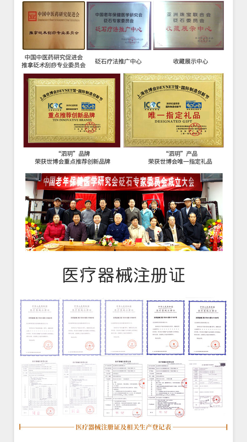 泗玥健康產(chǎn)業(yè)源于1987年,歷經(jīng)二十多年的發(fā)展目前已成為一家集砭石原材料采集銷售、中醫(yī)砭術調(diào)理、美容養(yǎng)生服務、以及砭術師職業(yè)培訓為一體的企業(yè)。泗玥砭石產(chǎn)品已進駐同仁堂、嘉事堂、華氏大藥房、康復之家等一千多家終端藥房,經(jīng)營砭石養(yǎng)生館一百六十余家,實現(xiàn)了天貓、淘寶、京東等電子商務平臺全覆蓋模式。2010年上海世博會上,泗玥品牌憑借其產(chǎn)品特點和影響力榮獲大會“重點推薦創(chuàng)新品牌”和“指定禮品”兩項最高大獎。