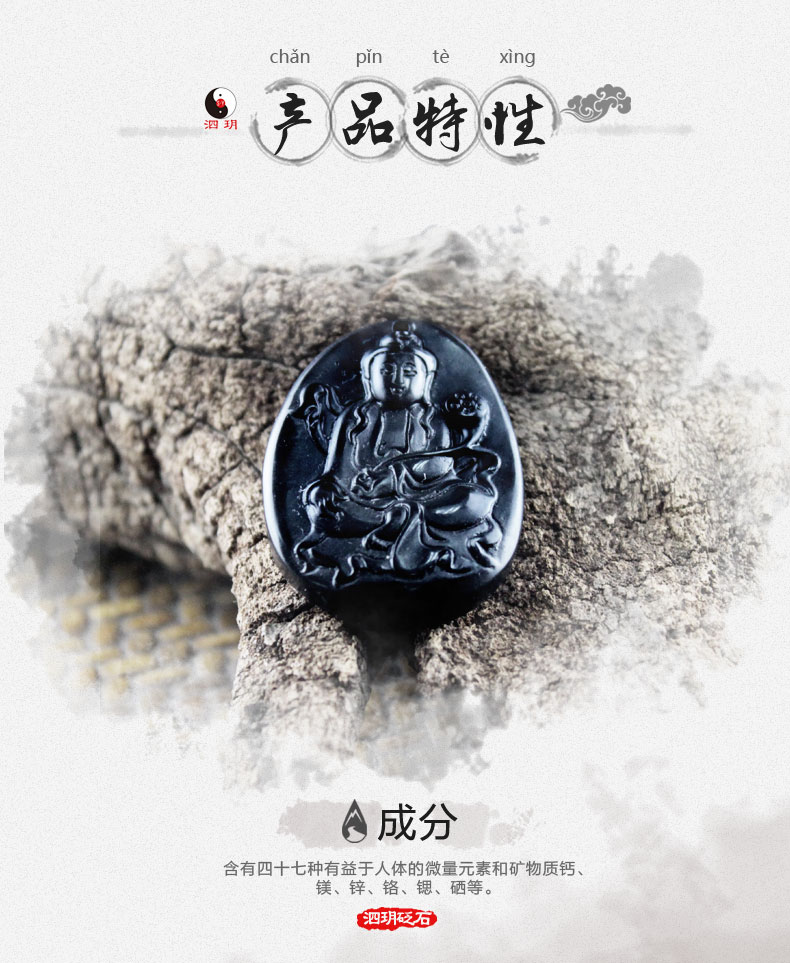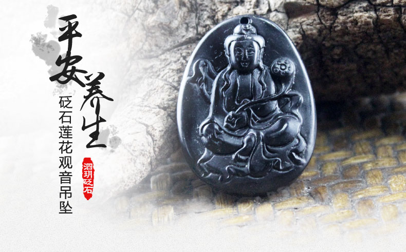 砭石觀音掛墜是由天然泗濱浮石加工而成的中醫養生飾品。觀音掛墜小巧精致,以高超細膩的雕刻藝術,把觀音仁慈的表情刻畫得淋漓盡致,把觀音衣服的皺褶刻畫得猶如飄動的感覺,充分體現了觀音濟世之神的神采,更體現出濃郁的東方文化底蘊和深邃的宗教文化。
