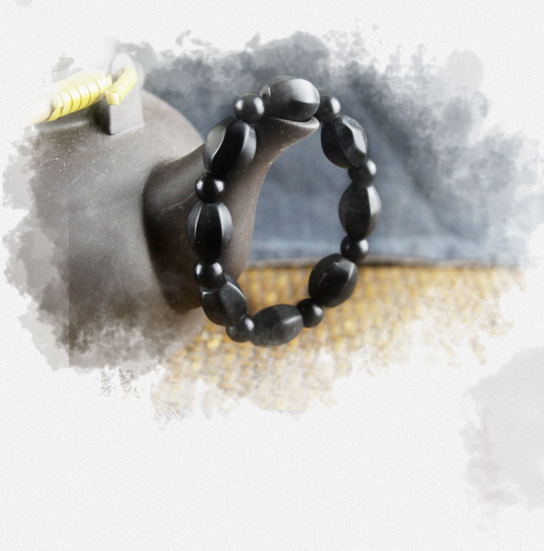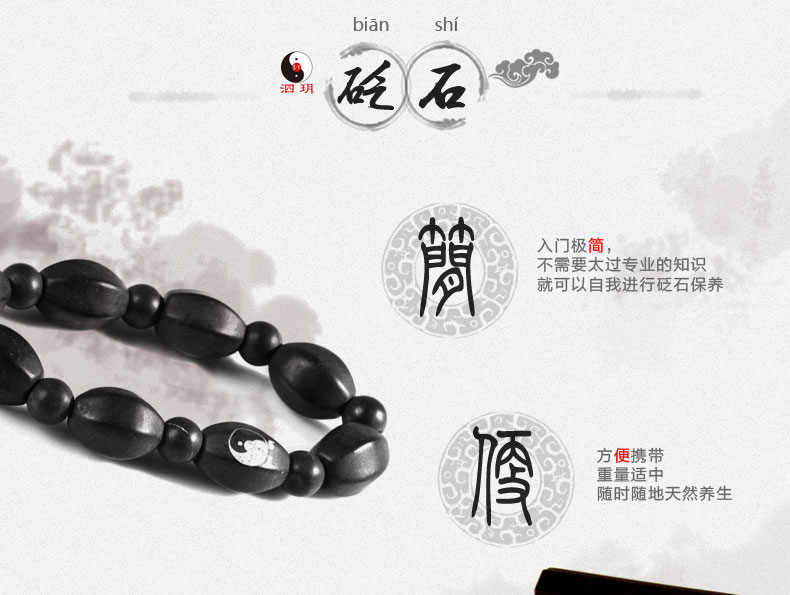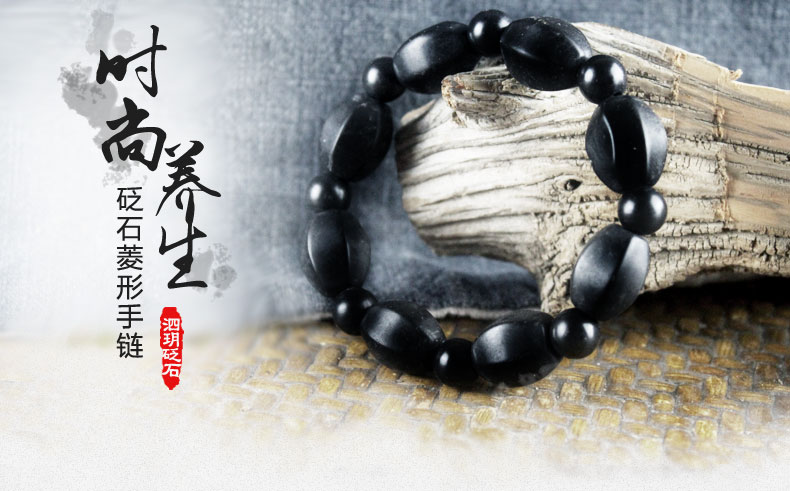 泗濱砭石菱形珠手鏈,簡稱砭石手鏈,是由天然泗濱浮石加工而成的養生飾品。構造上由砭石菱形珠和砭石小圓珠組成。砭石手鏈時尚靚麗,手感溫潤,既可作為潮流飾品,又可用于養生保健。