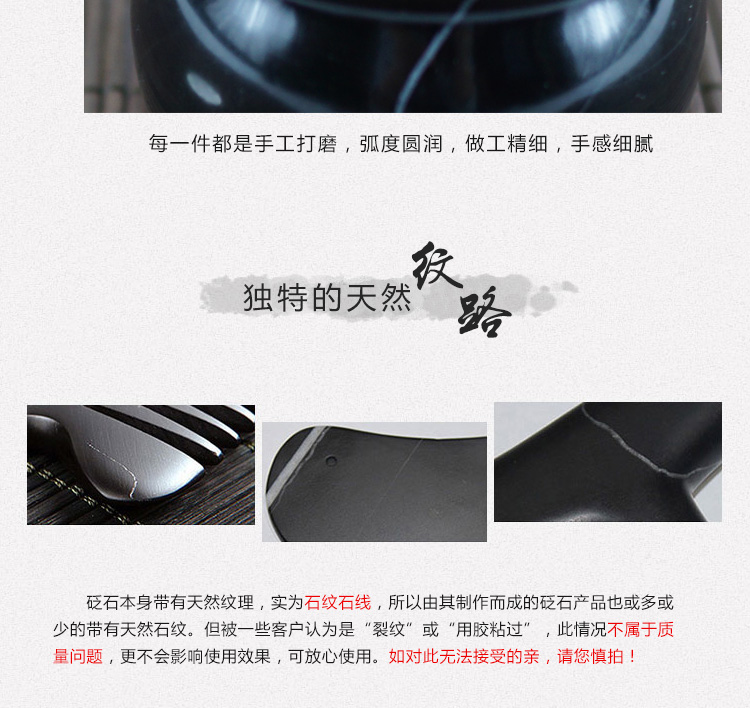 泗濱砭石產品由泗濱浮石制作而成,泗濱浮石本身帶有天然的紋理,所以由其制成的砭石產品也會帶有石紋。通常石紋呈點 、線、條、圓圈狀或以黃斑、石斑樣不規則分布于產品表面。因此天然泗濱砭石產品表面均會存在或多或少的白色或黃色的各式石紋,這屬于正常現象,并不影響使用效果。