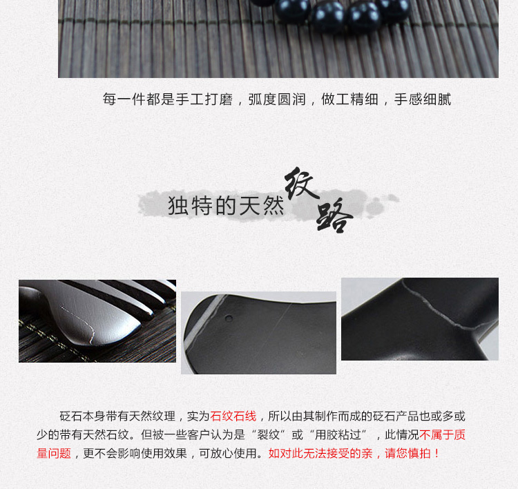 泗濱砭石產(chǎn)品由泗濱浮石制作而成,泗濱浮石本身帶有天然的紋理,所以由其制成的砭石產(chǎn)品也會帶有石紋。通常石紋呈點 、線、條、圓圈狀或以黃斑、石斑樣不規(guī)則分布于產(chǎn)品表面。因此天然泗濱砭石產(chǎn)品表面均會存在或多或少的白色或黃色的各式石紋,這屬于正常現(xiàn)象,并不影響使用效果。