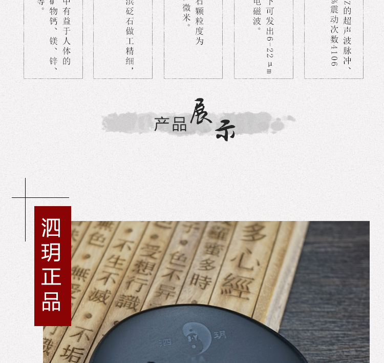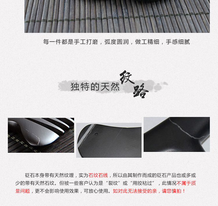 泗濱砭石產品由泗濱浮石制作而成,泗濱浮石本身帶有天然的紋理,所以由其制成的砭石產品也會帶有石紋。通常石紋呈點 、線、條、圓圈狀或以黃斑、石斑樣不規則分布于產品表面。因此天然泗濱砭石產品表面均會存在或多或少的白色或黃色的各式石紋,這屬于正常現象,并不影響使用效果。