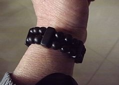 泗濱砭石雙排女手鏈蘊涵天然的極遠紅外,通過佩帶或自然摩擦,與人體組織細胞中的水分子產生共振,形成溫熱效應,促使皮下組織溫度上升,擴張毛細血管,增強血液循環。