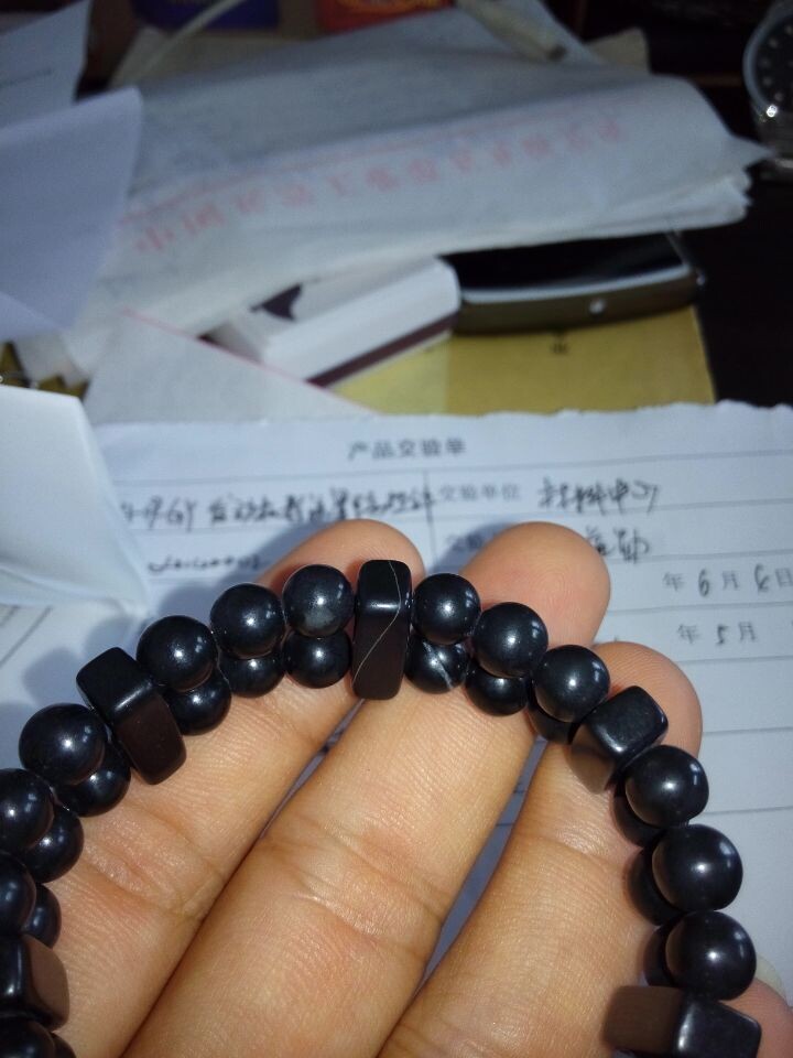 手鏈直徑約50mm。由長方片和小圓珠組成,長方片尺寸約:14*6*5mm 共7個。小圓珠直徑約7mm 共42顆。共7組。(穿繩有彈性)
