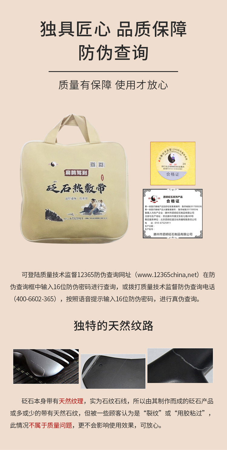 泗濱砭石產品由泗濱浮石制作而成,泗濱浮石本身帶有天然的紋理,所以由其制成的砭石產品也會帶有石紋。通常石紋呈點 、線、條、圓圈狀或以黃斑、石斑樣不規則分布于產品表面。因此天然泗濱砭石產品表面均會存在或多或少的白色或黃色的各式石紋,這屬于正常現象,并不影響使用效果。