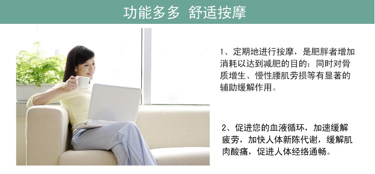針對人體頸部、背部、腰部等容易引起酸痛疲乏的部位而設(shè)計(jì)。正轉(zhuǎn)為紅燈加熱揉捏按摩。反轉(zhuǎn)為綠燈揉捏按摩。