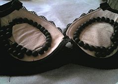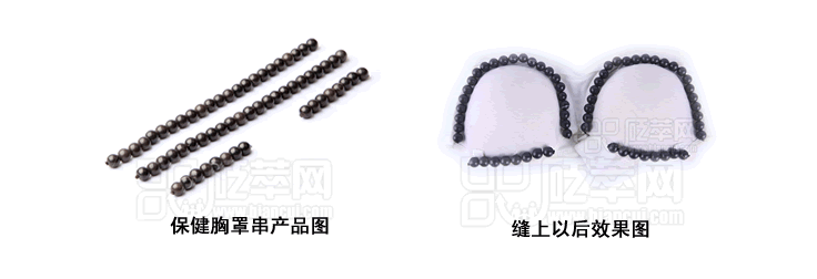 泗濱砭石保健胸罩,又稱砭石乳罩或砭石文胸,是利用砭石的遠紅外和超聲波特性研制而成的保健內衣。將長度不同的兩組砭珠環綴在胸罩內部,通過砭石與胸部不適部位的接觸和摩擦,可以疏通局部經絡。砭石胸罩制作簡單,使用方便,只需將砭石珠串縫綴到文胸上即可穿戴。