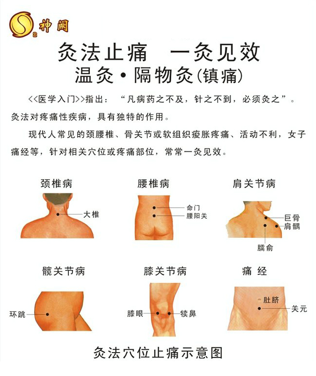 溫灸發(fā)明人對傳統(tǒng)灸法進(jìn)行了三十多年的深入研究,在其首創(chuàng)的“肝病中華三環(huán)療法”中首先以天灸發(fā)泡法代替了傳統(tǒng)的艾灸法,接著發(fā)明了溫灸?隔物灸(原名神闕溫灸貼、簡稱隔物灸)等專列產(chǎn)品,使灸法成為醫(yī)務(wù)人員以及普通老百姓都能規(guī)范使用的簡便、高效的醫(yī)療手段。 溫灸隔物灸使用時(shí)只需打開密封袋,輕輕抖動(dòng)數(shù)次,撕去兩邊膠帖保護(hù)紙,或?qū)鼐母粑锞姆湃霂删o的固定袋內(nèi),隔物灸工作面(即有神闕商標(biāo)的一面),對準(zhǔn)相關(guān)穴位或阿是穴(疼痛部位)即可。使用30分鐘后,溫度可達(dá)50℃-60℃,在此溫度范圍可持續(xù)恒溫達(dá)8小時(shí)以上,相對于傳統(tǒng)溫灸500壯的灸量。 經(jīng)上海中醫(yī)藥大學(xué)附屬曙光醫(yī)院等多家醫(yī)院的臨床驗(yàn)證:溫灸隔物灸對骨關(guān)節(jié)疾病,特別是頸、腰椎病的治療效果最為明顯。其有養(yǎng)筋榮脈、逐寒祛濕、行氣活血的作用,可以溫經(jīng)通絡(luò)、活血化淤、消癥散結(jié),能明顯緩解頸、腰椎酸脹疼痛,頭痛、頭暈及肢體關(guān)節(jié)酸痛、強(qiáng)迫體位等癥侯群。常能取得立竿見影的效果,總有效率達(dá)96.2%。