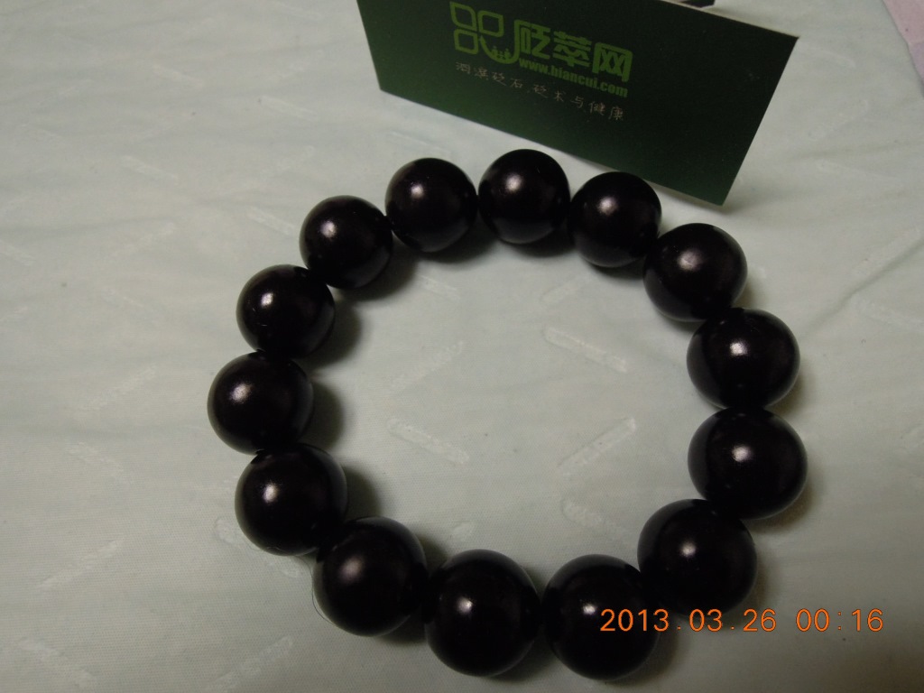 泗濱砭石手鏈鏈蘊涵天然的遠紅外,通過佩帶或自然摩擦,與人體組織細胞中的水分子產生共振,形成溫熱效應,促使皮下組織溫度上升,擴張毛細血管,增強血液循環。