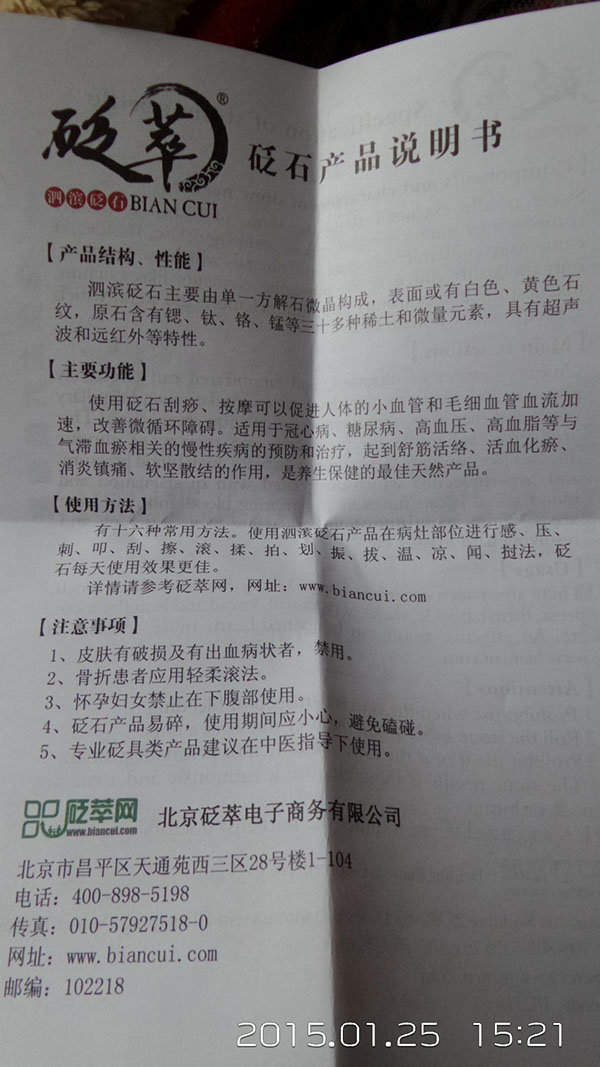 我是第一次買砭石,都說砭石好,但是怎么個好法我并不知道,所以決定買些來自己親自體驗下。昨天拿到貨我就迫不及待的打有開郵包,把買的所有的東西都打開來看。老公好喜歡那個貔貅掛墜,我拿著那把梳子就使勁的梳起頭發來,愛不釋手。砭石接觸到人體,涼涼的那種感覺,立刻就能讓人精神氣爽。換購的那兩條手鏈和非常喜歡。而且還開了正規的發票,這可比某寶上淘的寶貝要好多了!!